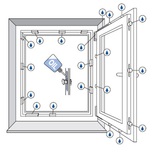 1. Всі рухомі частини фурнітури вікна слід змащувати 1-2 рази на рік.