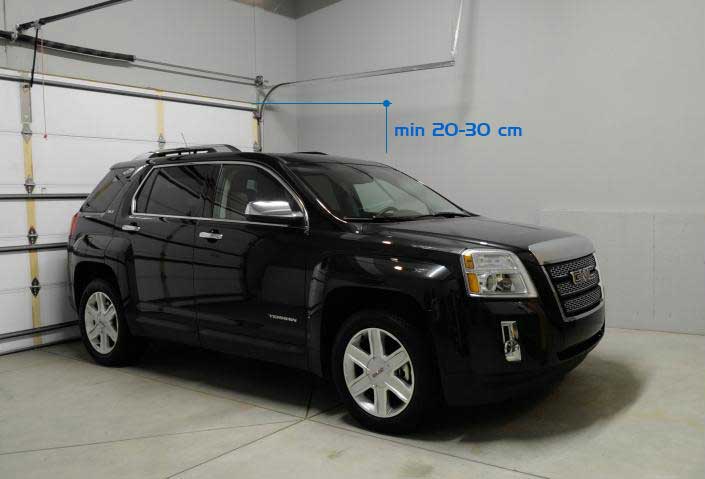 Висота отвору гаражних воріт повинна бути на 20-30 см більше висоти автомобіля з врахуванням багажника чи антени на даху автомобіля